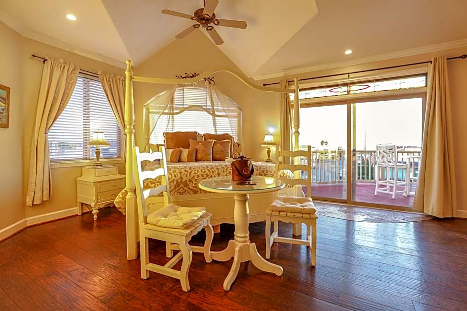 Featuring a fireplace, this room provides a spa bath, refrigerator and cable TV with a DVD player. A bar sink filtered water is also provided.