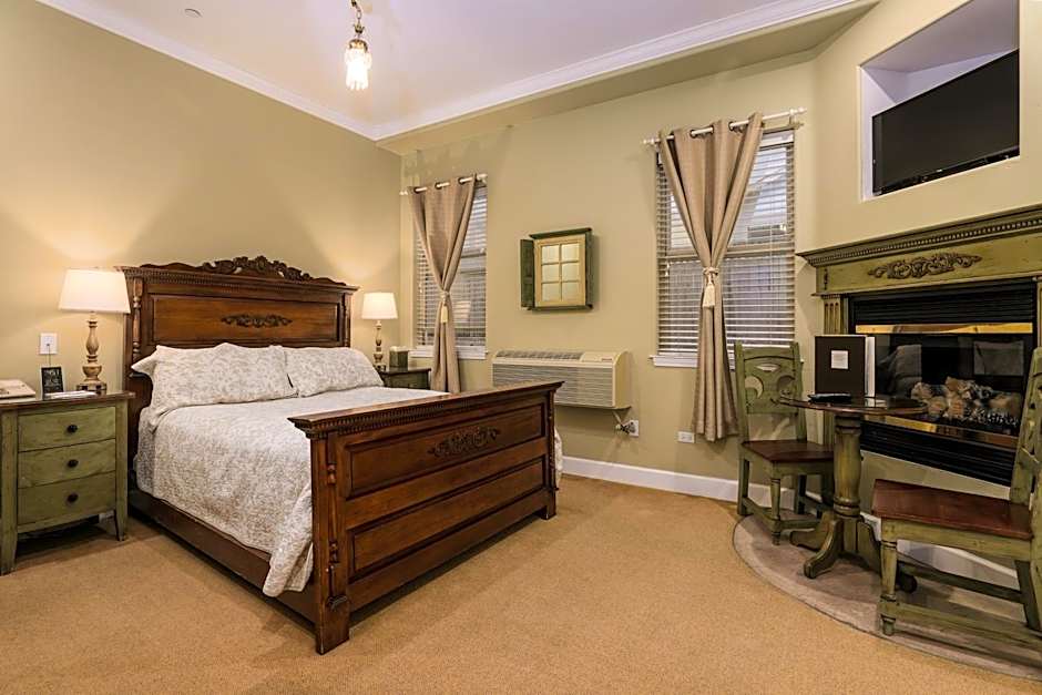 A fireplace, patio, TV with DVD/CD player, compact refrigerator, bar sink with reverse osmosis drinking water and private bathroom with 2-person spa bath, separate shower and dual vanity are included in this 1-bedroom suite.